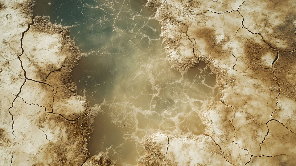 A dense forest of pine trees shrouded in mist, seen from above. The scene is set against the backdrop of a white sky, creating an atmosphere that evokes tranquility and natural beauty. The trees have green needles, their branches reaching out towards each other as if forming an intricate pattern or exuding calmness.