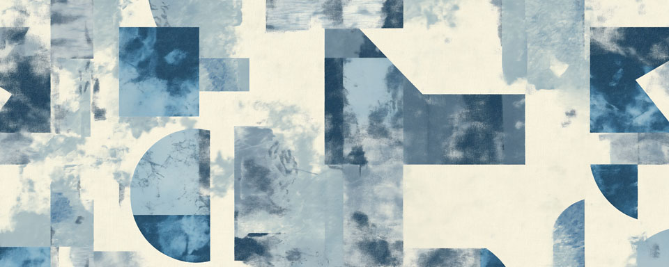 An Aboriginal art piece depicting swirling blue and white patterns resembling ocean waves with small bubbles representing water droplets on the surface. The background is a dark navy blue, creating an atmosphere reminiscent of a night sea and stars.